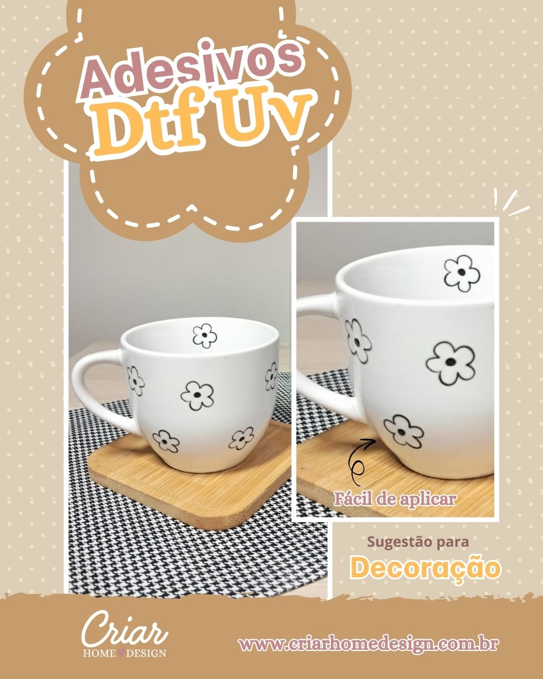 Adesivo Dtf uv com 31 coraçãozinhos e 48 florzinhas para usar em produtos de cerâmicas, vidros, acrílicos, potes e garrafas de plásticos.